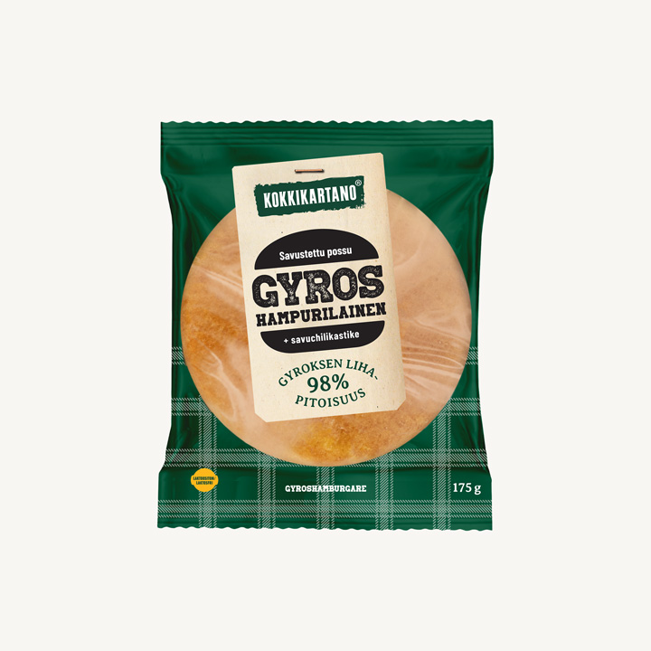 Gyros hampurilainen 175 g, laktoositon, voimakassuolainen