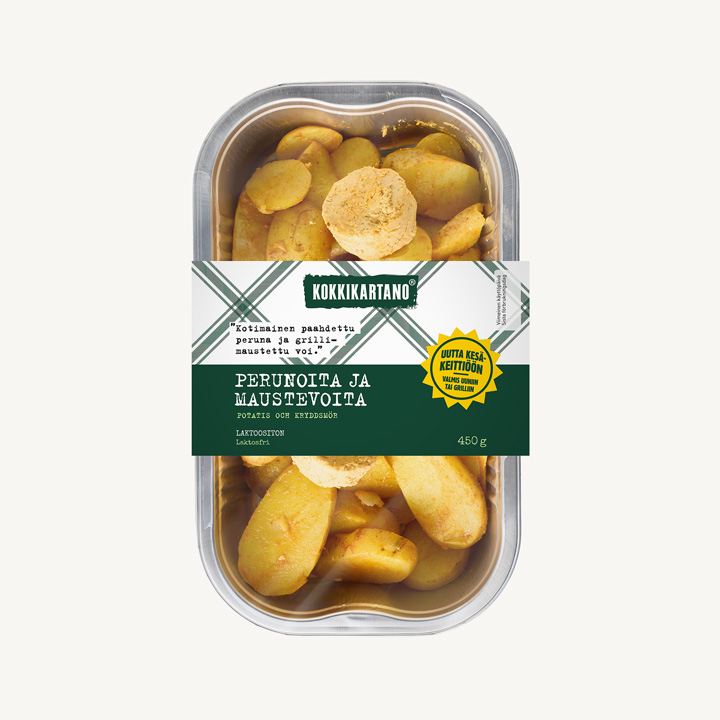 Kesäkeittiöön on pian saapumassa kuusi uutta perunaherkullista uutuutta – kolme kuluttajapakattua ja kolme palvelutiskiin. Kaikki perunatuotteet ovat valmiiksi kypsennettyjä ja suunniteltu suoraan uuniin tai grilliin, jotta kesäruokailu olisi mahdollisimman vaivatonta. Nämä sesonkituotteet tuovat reilusti makua kesän arkeen ja juhlaan, oli kyse sitten nopeasta lisukkeesta tai näyttävämmästä grillikattauksesta.
