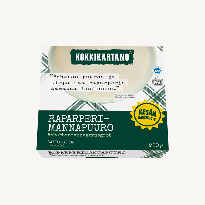 Kesän makeampaa puolta edustaa raparperilla maustettu mannapuuro, jossa lempeä puuro ja reilusti raparperia kohtaavat. Kirpeän raikas maku vie ajatukset kesään ja tekee tästä kausiherkusta ihanan jälkiruoan tai välipalan.