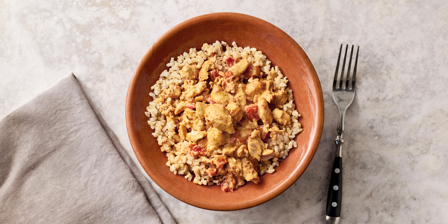 Broilerikastike 250 g: Broileri 44 % (Suomi), tomaattimurska, kanaliemi (vesi, luullinen broilerinliha, palsternakka, sipuli, suola, mustapippuri, maustepippuri, laakerinlehti), suomalainen kerma, suomalainen jogurtti (maito, hapate, kerma, maitojauhe), tärkkelys (peruna, maissi), rapsiöljy, sokeri, sitruunapyre, jodioitu suola, valkosipuli, chili, inkivääri, juustokumina, paprika, mustapippuri, kaneli, korianteri, kardemumma, tähtianis, sarviapila, kurkuma, neilikka, laakerinlehti. Riisi 250 g: Vesi, täysjyväriisi (EU), rapsiöljy, jodioitu suola.