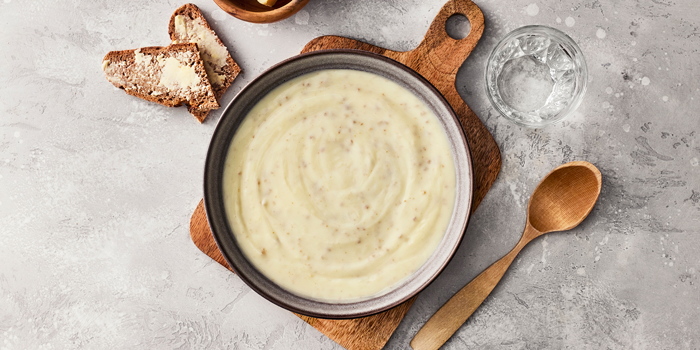 Vesi, suomalainen kerma, kylmäsavuporo 4 % (poronliha (Suomi, Ruotsi), suola, glukoosi (maissi), hapettumisenestoaine (E301)), maissitärkkelys, suomalainen voi, sokeri, jodioitu suola, mustapippuri, kurkuma.