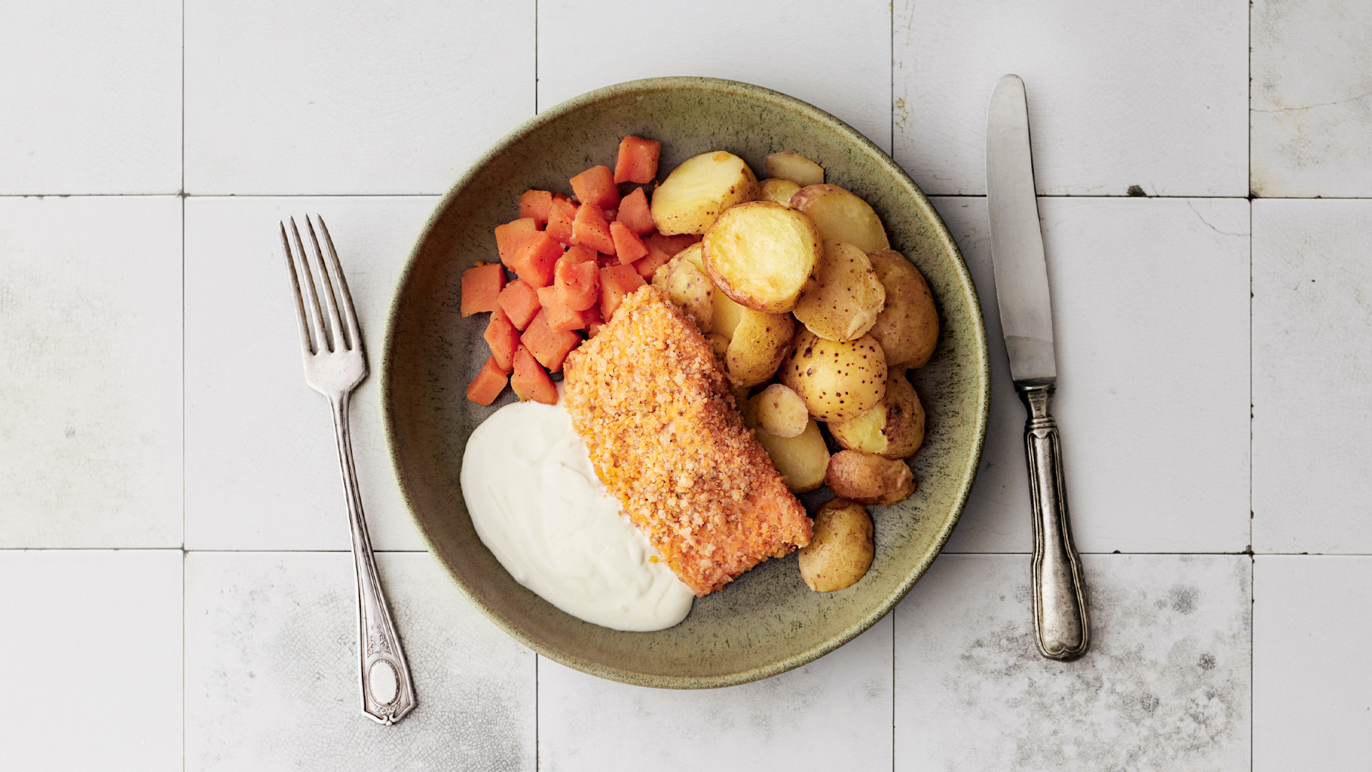 Kalakokkausta karttaville taattu kotimainen kalasaalis raikkaalla kastikkeella. Kirjolohen kaverina kuoriperunaa, porkkanaa, sitruunaa ja raikas jogurttikastike. Ei tarvita taaskaan kuin haarukka.